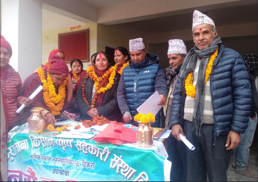 भुमिकास्थान नगरपालिका वडा नम्बर ९, ढिकुरामा रहेको साना किसानले आफ्नो नवौं साधारण सभा सम्पन्न गर्नुका साथै नयाँ नेतृत्व चयन गरेको छ । मिना मरासिनी भट्टराईको अध्यक्षतामा ९ सदस्सिय सञ्चालक समिति गठन गरिएको शाखाका प्रबन्धक मदन गैरेले जानकारी दिए । जसको उपाध्यक्षमा नमकला चुँदाली, सदस्यहरुमा बिमला खनाल घिमिरे, मनी बिक, मोतिकला थापा, शिवकला पालुङ्गे, तारा रायमाझी, यमकुमारी गुरुङ र मिना राष्कोटी रहेका छन् ।