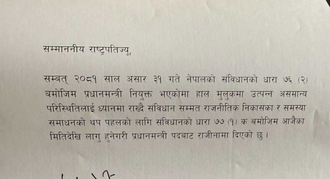 प्रधानमन्त्री केपी शर्मा ओलीले राजीनामा दिएका छन्।
