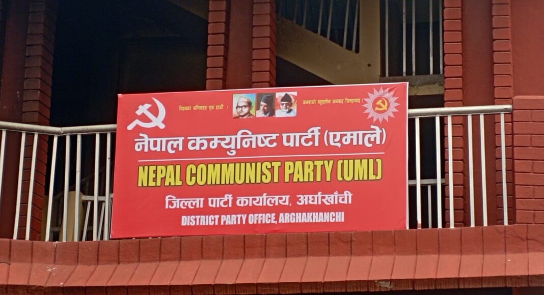 जेन–जी आन्दोलनको क्रममा तोडफोड र आगजनी गरेर ध्वस्त पारिएको पार्टी कार्यालयमा नयाँ बोर्डसमेत राखिएको छ । पार्टी कार्यालय सफा गरेर अत्यावश्यक सेवा सञ्चालनमा ल्याईएको (नेकपा) एमाले अर्घाखाँचीका अध्यक्ष पिताम्बर भुसालले जानकारी दिए ।