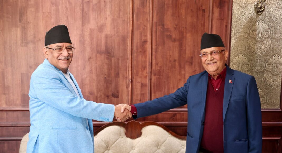 नेकपा एमालेका अध्यक्ष केपी शर्मा ओली र नेपाली कम्युनिस्ट पार्टी (नेकपा)का संयोजक पुष्पकमल दाहाल ‘प्रचण्ड’ बिच भेटवार्ता भएको छ । दुई नेताबिच च्यासल स्थित एक घरमा करिब आधा घण्टा एक्लाएक्लै भेटवार्ता भएको हो ।
