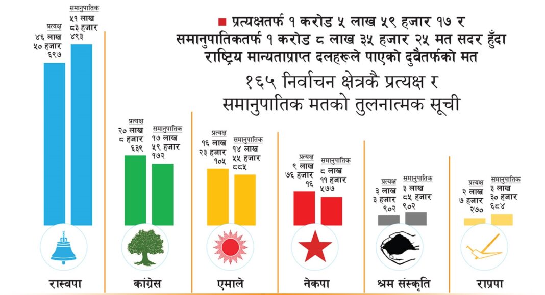 रास्वपा, कांग्रेस, एमालेले कती पाए प्रत्यक्षमा मत ?
